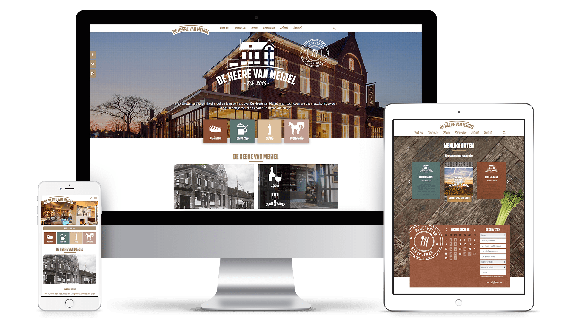 De Heere van Meijel is een bloeiende horecazaak in hartje Meijel, die naast een restaurant, grand café en slijterij ook een groot scala aan dagrecreatie te bieden heeft. Als vaste partner zitten wij regelmatig aan tafel en denken mee hoe we de juiste doelgroepen bereiken, met welk doel en welke (creatieve) uitingen daarbij horen. En soms gaan we weer even terug naar de ‘tekentafel’ om toekomstbestendig door te pakken. Dat levert een stevig partnership op waar we samen de vruchten van plukken.