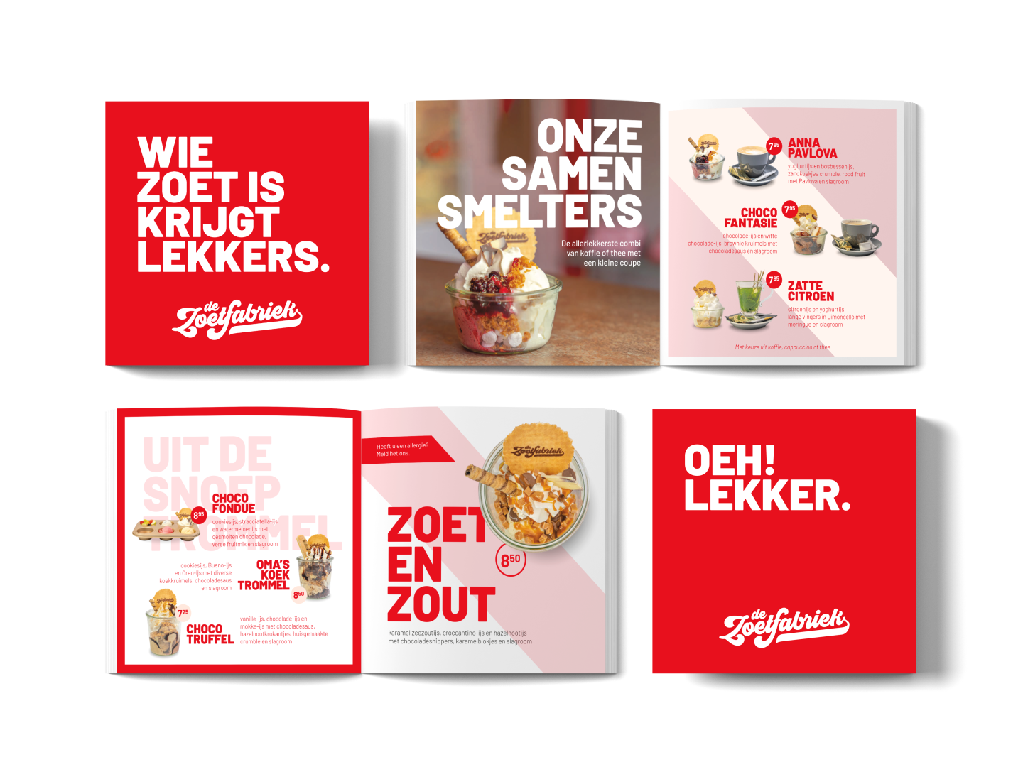 De Zoetfabriek is dé ijssallon in De Vermaekerij, https://www.devermaekerij.nl/, sinds de zomer 2022. Vanuit strategie, positionering hebben hebben wij het creatief concept vorm mogen geven met daarbij de doorvertaling naar interieur en aanbod. Eindresultaat: Een unieke eigentijdse ijssalon. Een lust voor het oog en een ware toevoeging voor het Smaek & Vermaek aanbod van De Vermaekerij.