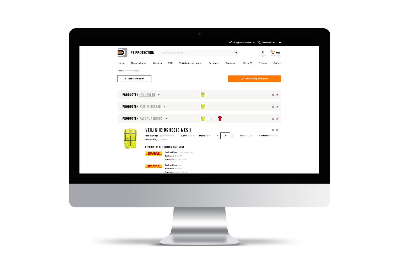 We hebben een op maat gemaakte webshop opgeleverd, waarbij de interface volledig gericht is op de eindgebruiker (bedrijven die makkelijk en snel hun kleding willen (bij)bestellen). De backend is gericht op PB Protection, dat uitgebreide beheermogelijkheden heeft om de eindgebruikers zo veel mogelijk te kunnen ontzorgen.