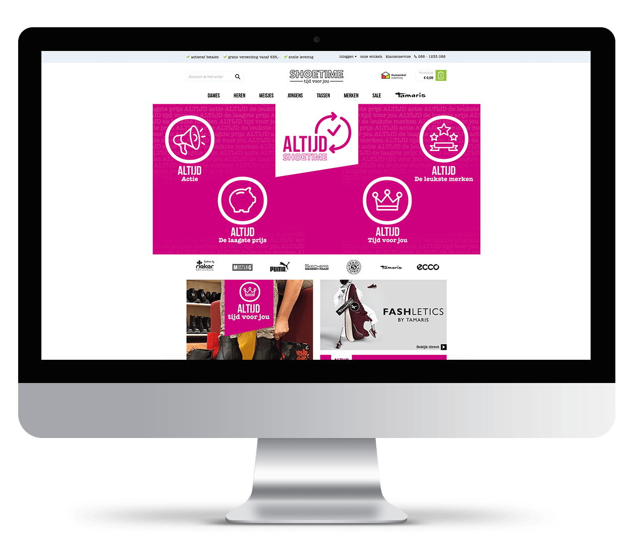 Wij zijn strategisch en creatieve partner van Shoetime. Vanuit de kernwaarden van het merk dachten we mee over de herpositionering van Shoetime en inspireerden we op marketing- en communicatie gebied. Dit resulteerde in een redesign van de huisstijl onder het motto ‘tijd voor jou’. Deze stijl is niet alleen in een nieuwe assortimentsfolder doorgevoerd, maar ook in de winkels!