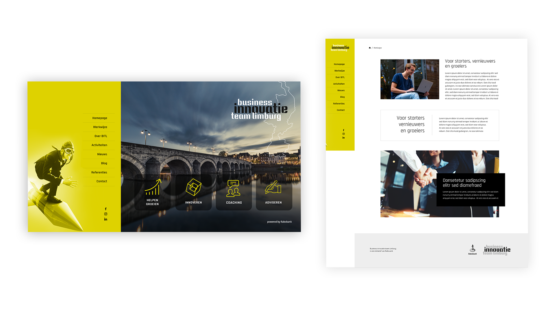 Bij INOVA kregen wij de vraag om de eerste website voor BITL neer te zetten gebaseerd op een reeds ontwikkelde huisstijl. Voor BITL is het belangrijk dat hun vier pijlers; Uitdagen, Coachen, Verbinden en Financiële oplossingen duidelijk naar voren komen op de website. Daarnaast moet de website de activiteiten onder de aandacht brengen waarmee zij ondernemers inspireren, verbinden en helpen om duurzame groei te realiseren in samenwerking met LIOF, Rabobank en Brightlands. Om de bijdragen van deze samenwerkingen te kunnen delen op de website waren en nieuws en projectenpagina vereist.